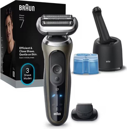 The Braun Series 7 delivers a closer, faster shave than ever while still being gentle on the skin. The 360° flexible shaving head follows every contour of your face, and three different modes help you achieve exactly the result you want. The smart care system keeps your shaver in top condition, so it feels like new every day. | ||||||||||||||||||||||||||||||||||||||||