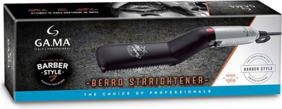 PRODUKTA APRAKSTS GAMA bārdas taisnotājs ar iebūvētu bīdāmo ķemmi ir ideāls līdzeklis bārdas izlīdzināšanai un ķemmēšanai, nesabojājot to, pateicoties tā vienmēr fiksētajai temperatūrai 165 °C. Tā Quick Heat tehnoloģija nozīmē arī to, ka taisnotājs sasniedz temperatūru tikai dažās sekundēs, kas ļauj ātri iegūt glītu un modernu izskatu. Āķis instrumenta galā ļauj to maksimāli ērti uzglabāt. • Vienmēr ideālā temperatūra 165 °C • Ātrā uzsilšana • Bārdas matu ķemmēšana un izlīdzināšana