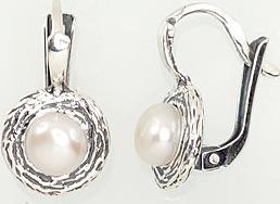 Sudraba auskari #2202153(POx-Bk)_PE, Sudrabs 925°, oksīds (pārklājums), Pērles , 3.9 gr.