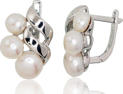 Sudraba auskari ar 'angļu' slēdzēju #2202917(PRh-Gr)_PE, Sudrabs 925°, rodijs (pārklājums), Pērles, 5.6 gr.