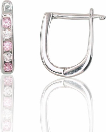 Sudraba auskari ar 'angļu' slēdzēju #2202950(PRh-Gr)_CZ+CZ-PI, Sudrabs 925°, rodijs (pārklājums), Cirkoni, 1 gr.