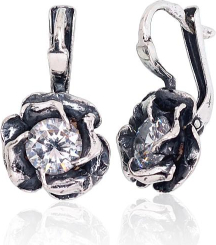 Sudraba auskari ar 'angļu' slēdzēju #2203226(POx-Bk)_CZ, Sudrabs 925°, oksids (pārklājums), Cirkoni, 4.8 gr.