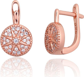 Sudraba auskari ar 'angļu' slēdzēju #2203763(PAu-R)_CZ, Sudrabs 925°, sarkanais zelts (pārklājums), Cirkoni, 2.8 gr.