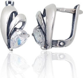 Sudraba auskari ar 'angļu' slēdzēju #2203774(POx-Bk)_CZ, Sudrabs 925°, oksids (pārklājums), Cirkoni, 2.7 gr.