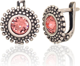 Sudraba auskari ar 'angļu' slēdzēju #2203793(POx-Bk)_SV-LPI, Sudrabs 925°, oksids (pārklājums), Kristāli, 2.7 gr.