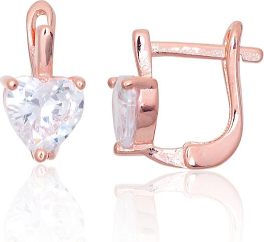 Sudraba auskari ar 'angļu' slēdzēju #2203838(PAu-R)_CZ, Sudrabs 925°, sarkanais zelts (pārklājums), Cirkoni, 1.9 gr.