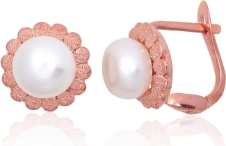 Sudraba auskari ar 'angļu' slēdzēju #2203840(PAu-R)_PE, Sudrabs 925°, sarkanais zelts (pārklājums), Pērles, 2.7 gr.