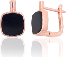 Sudraba auskari ar 'angļu' slēdzēju #2204109(PAu-R)_ON, Sudrabs 925°, sarkanais zelts (pārklājums), Onikss, 2.4 gr.