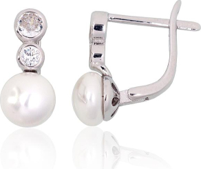 Sudraba auskari ar 'angļu' slēdzēju #2204151(PRh-Gr)_CZ+PE, Sudrabs 925°, rodijs (pārklājums), Cirkoni, Pērles, 3.1 gr.