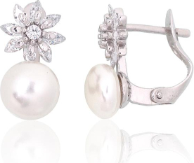 Sudraba auskari ar 'angļu' slēdzēju #2204152(PRh-Gr)_CZ+PE, Sudrabs 925°, rodijs (pārklājums), Cirkoni, Pērles, 2.4 gr.