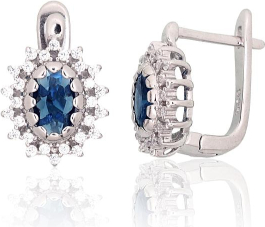 Sudraba auskari ar 'angļu' slēdzēju #2204250(PRh-Gr)_CZ+CZ-B, Sudrabs 925°, rodijs (pārklājums), Cirkoni, 3.3 gr.