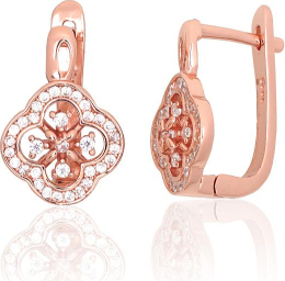 Sudraba auskari ar 'angļu' slēdzēju #2204260(PAu-R)_CZ, Sudrabs 925°, sarkanais zelts (pārklājums), Cirkoni, 3.6 gr.