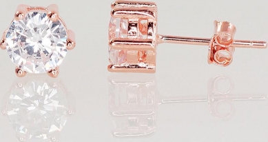 Sudraba auskari #2203001(PAu-R)_CZ, Sudrabs 925°, sarkanais zelts (pārklājums), Cirkoni , 1.8 gr.