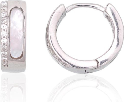 Sudraba auskari ar apaļu aizdāri #2204111(PRh-Gr)_CZ+PL-W, Sudrabs 925°, rodijs (pārklājums), Cirkoni, Perlamutrs, 2.4 gr.