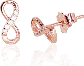 Sudraba auskari-puseti #2202989(PAu-R)_CZ, Sudrabs 925°, sarkanais zelts (pārklājums), Cirkoni, 1.1 gr.