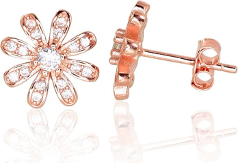 Sudraba auskari-puseti #2203128(PAu-R)_CZ, Sudrabs 925°, sarkanais zelts (pārklājums), Cirkoni, 2.1 gr.