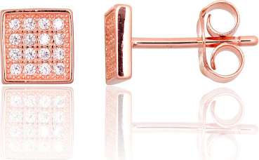 Sudraba auskari-puseti #2203735(PAu-R)_CZ, Sudrabs 925°, sarkanais zelts (pārklājums), Cirkoni, 1.1 gr.