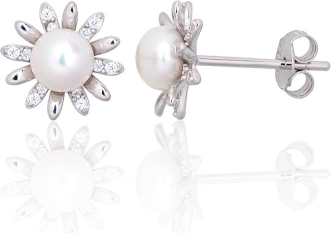 Sudraba auskari-puseti #2203837(PRh-Gr)_CZ+PE, Sudrabs 925°, rodijs (pārklājums), Cirkoni, Pērles, 1.1 gr.