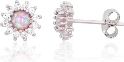 Sudraba auskari-puseti #2204142(PRh-Gr)_CZ+OP-PI, Sudrabs 925°, rodijs (pārklājums), Cirkoni, Opalīts, 1.3 gr.