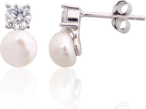 Sudraba auskari-puseti #2204285(PRh-Gr)_CZ+PE, Sudrabs 925°, rodijs (pārklājums), Cirkoni, Pērles, 1.6 gr.