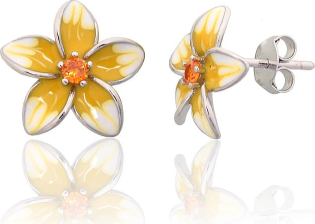 Sudraba auskari-puseti #2204288(PRh-Gr)_CZ-OR+ML-W+ML-Y, Sudrabs 925°, rodijs (pārklājums), Cirkoni, Juvelieru emalja, 1.9 gr.