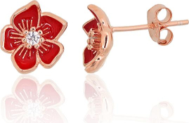 Sudraba auskari-puseti #2204298(PAu-R)_CZ+ML-R, Sudrabs 925°, sarkanais zelts (pārklājums), Cirkoni, Juvelieru emalja, 1.7 gr.