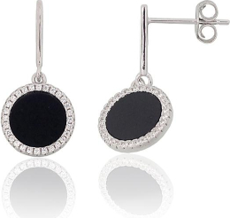 Sudraba auskari-puseti #2204301(PRh-Gr)_CZ+ON, Sudrabs 925°, rodijs (pārklājums), Cirkoni, Onikss, 2.1 gr.