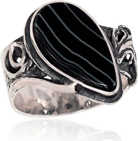Sudraba gredzens #2101695(POx-Bk)_AG, Sudrabs 925°, oksids (pārklājums), Ahāts, Izmērs: 19, 7.2 gr.
