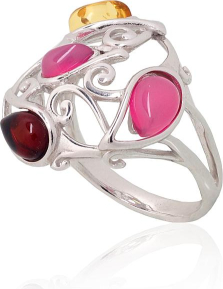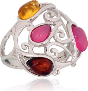 Sudraba gredzens #2101628(PRh-Gr)_AM+AB-CH+AB-LE, Sudrabs 925°, rodijs (pārklājums), Ametists, Dzintars, Izmērs: 17.5, 5 gr.