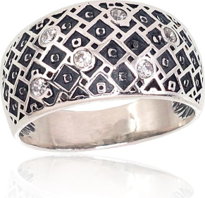 Sudraba gredzens #2101683(POx-Bk)_CZ, Sudrabs 925°, oksids (pārklājums), Cirkoni, Izmērs: 18, 5.6 gr.