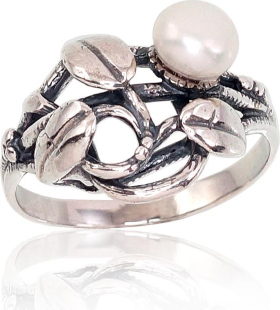 Sudraba gredzens #2101705(POx-Bk)_PE, Sudrabs 925°, oksids (pārklājums), Pērles, Izmērs: 19.5, 3.2 gr.