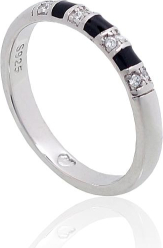 Sudraba gredzens #2101843(PRh-Gr)_CZ+ML-BK, Sudrabs 925°, rodijs (pārklājums), Cirkoni, Juvelieru emalja, Izmērs: 15.5, 2.3 gr.