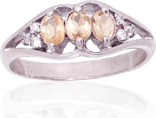 Sudraba gredzens #2101884(PRh-Gr)_CZ+CT, Sudrabs 925°, rodijs (pārklājums), Cirkoni, Citrīns, Izmērs: 16, 2.6 gr.