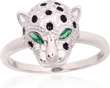 Sudraba gredzens #2101932(PRh-Gr)_CZ+CZ-G+ML-BK, Sudrabs 925°, rodijs (pārklājums), Cirkoni, Juvelieru emalja, Izmērs: 17.5, 3 gr.