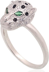 Sudraba gredzens #2101932(PRh-Gr)_CZ+CZ-G+ML-BK, Sudrabs 925°, rodijs (pārklājums), Cirkoni, Juvelieru emalja, Izmērs: 19, 3.1 gr.