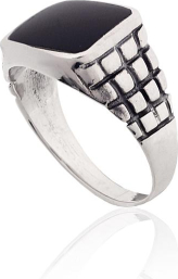 Sudraba gredzens #2101862(POx-Bk)_ON, Sudrabs 925°, oksids (pārklājums), Onikss, Izmērs: 21, 9.4 gr.