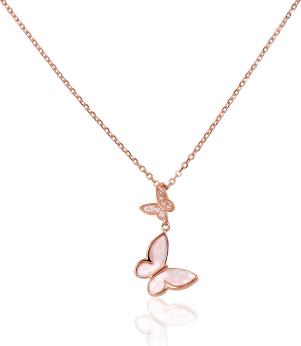 Sudraba kaklarota #2500157(PAu-R)_CZ+PL, Sudrabs 925°, sarkanais zelts (pārklājums), Cirkoni, Perlamutrs, garums: 42 cm, 2.3 gr.