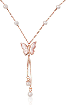 Sudraba kaklarota #2500158(PAu-R)_CZ+PE+PL, Sudrabs 925°, sarkanais zelts (pārklājums), Cirkoni, Pērles, Perlamutrs, garums: 42 cm, 3.5 gr.