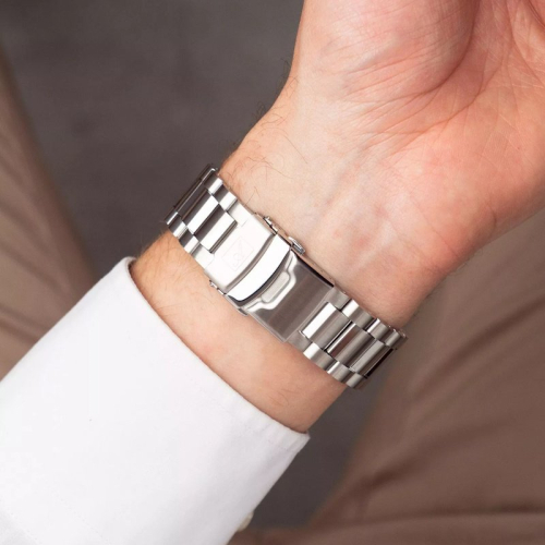 Apyrankės užsegimas Plieninis, Su gamintojo logotipu, Z formos su fiksatoriais (atsisegus užsegtuką, laikrodis pasilieka ant rankos)