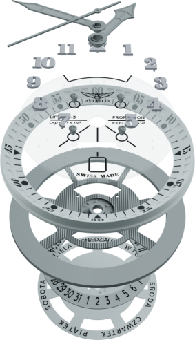 Ciferblatas Tamsoje švytinčios valandų padalos, Tamsoje švytinčios rodyklės, Metalinės valandų padalos