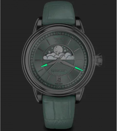 Ciferblatas Tamsoje švytinčios rodyklės, Mėnulio fazės indikatorius, Metalinės valandų padalos