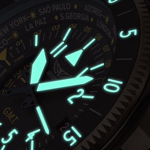 Ciferblatas Tamsoje švytinčios rodyklės, Metalinės valandų padalos, GMT indikatorius, Tamsoje švytinčios valandų padalos