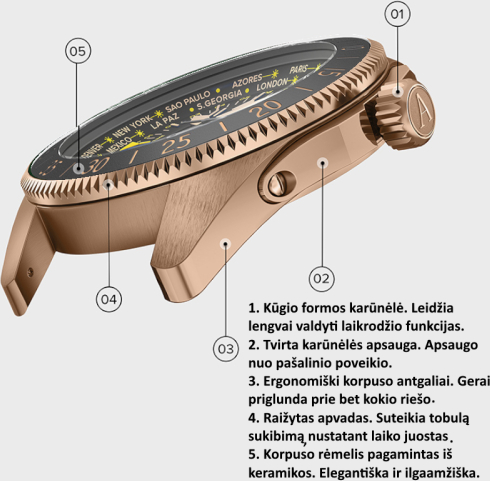 Ypatybės Šio laikrodžio akcentas, yra kitos laiko juostos laiko parodymas, Ribotos serijos gaminys ("Limited Edition")