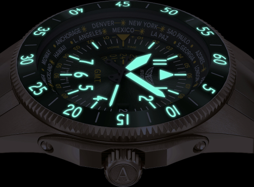 Ciferblatas Metalinės valandų padalos, GMT indikatorius, Tamsoje švytinčios valandų padalos, Tamsoje švytinčios rodyklės