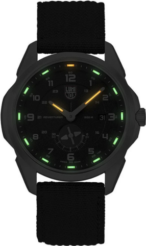 Ciferblatas Metalinės valandų padalos, Tamsoje švytinčios valandų padalos, Tamsoje švytinčios rodyklės, Sekundinė rodyklė - atskirame ciferblate, Rodyklinis