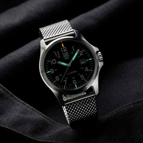 Ciferblatas Tamsoje švytinčios valandų padalos, Tamsoje švytinčios rodyklės, Rodyklinis, Metalinės valandų padalos