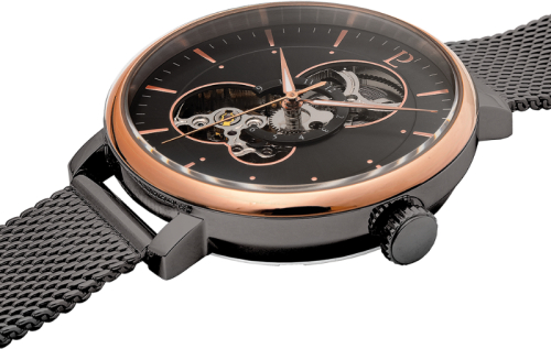 Korpuso ypatybės Per dangtelį matosi laikrodžio mechanizmas, Nerūdijančio plieno dangtelis, Dangtelis užsukamas ant sriegio
