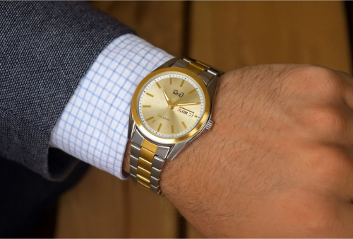 Korpuso spalva ir papuošimai Paauksuotas, Plieno spalvos, Pastaba: šio laikrodžio korpusas padengtas aukso imitacija