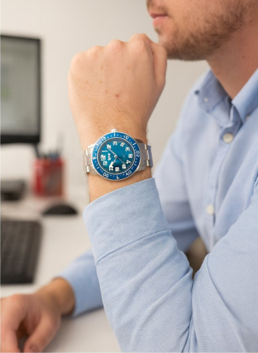 Apyrankės užsegimas Su gamintojo logotipu, Z formos plieninis (atsisegus užsegtuką, laikrodis pasilieka ant rankos)