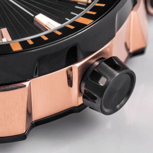 Korpuso ypatybės Per dangtelį matosi laikrodžio mechanizmas, Laiko pervedimo galvutė fiksuojama ant sriegio, Sukiojamas laiko ataskaitos žiedas
